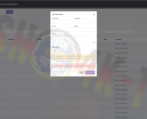 my8kQuickly create and manage sub-resellers with secure credentials, credit allocation, demo permissions, and detailed notes. Track accounts efficiently and integrate instantly into your main reseller panel.